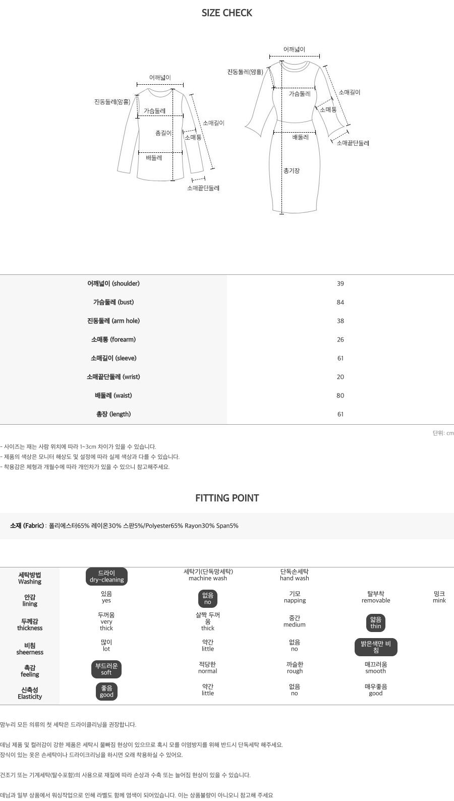 ※ 상품사이즈 치수는 재는 방법과 위치에 따라 1~3cm 오차가 있을 수 있습니다.